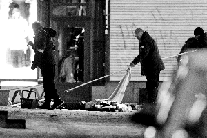 11日,瑞典首都斯德哥尔摩的法医检查一名疑似袭击者的遗体。