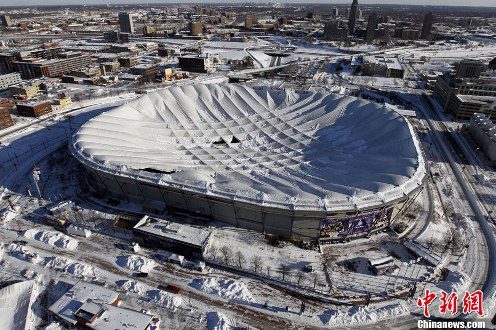 美国明尼苏达州维京人队体育场的圆型屋顶因大雪坍塌