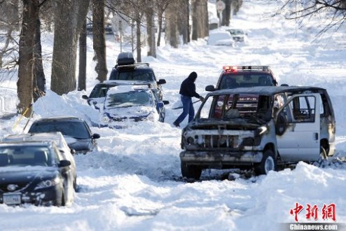 而在美国中西部,暴风雪继续肆虐。在漫天风雪的印地安那,有70多辆汽车被困在公路上,有些车已经抛锚12个小时,有关单位正在设法营救。