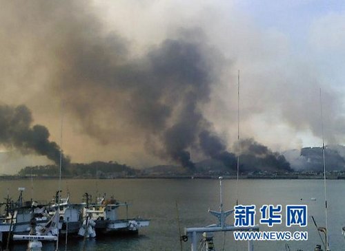 2010年11月23日韩国称西部海域延坪岛附近遭到朝鲜炮击11月23日,韩国西部延坪岛上硝烟滚滚。