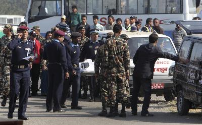 12月16日下午,遇难者遗体被运回加德满都。