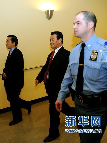 12月19日,在纽约联合国总部,朝鲜常驻联合国代表申善昊(中)赶往安理会磋商室。当日,联合国安理会就朝鲜半岛局势举行紧急闭门磋商。新华社记者申宏摄
