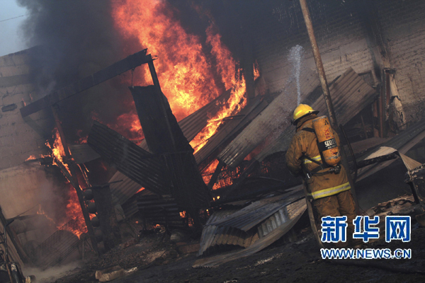 12月19日,一名消防员在墨西哥中部圣马丁-特斯梅卢坎村的石油管道爆炸现场灭火。新华社/路透