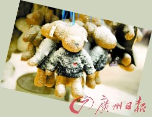 17日,在柏林一家商店,泰迪熊上挂满了雪。
