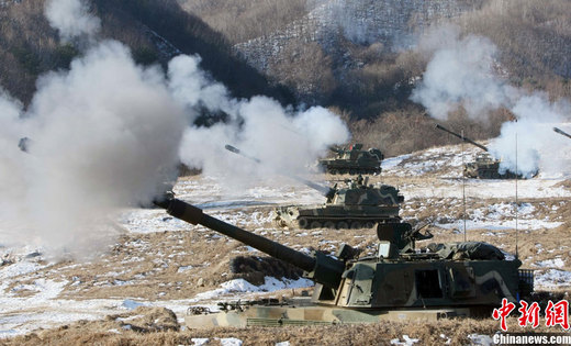 12月20日,韩国军方开始在延坪岛举行海上实弹射击训练。资料图为韩国K9火炮。