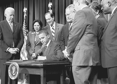 12月17日,美国总统奥巴马(中)在首都华盛顿签署减税延期妥协法案。新华社发