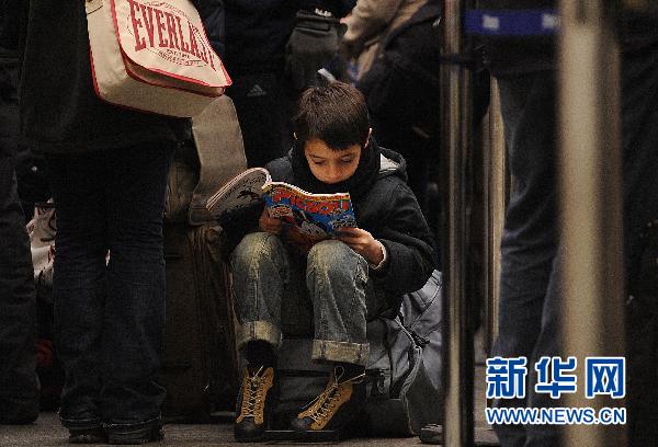 2010年12月21日 大雪“致瘫”欧洲交通 12月21日,在英国伦敦圣潘克勒斯车站,一名小旅客在排队等待搭乘“欧洲之星”高铁时看漫画书。受近日强降雪影响,欧洲多个交通枢纽瘫痪。作为欧洲和美洲大陆间重要航空中转站的伦敦希思罗机场滞留旅客近万名。 新华社/法新