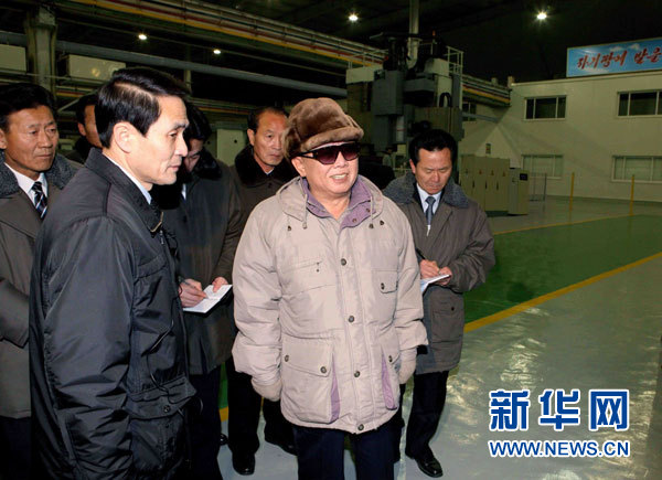 朝鲜中央通讯社22日提供的照片显示,朝鲜最高领导人金正日近日视察熙川莲荷机械综合工厂。据朝鲜中央通讯社21日报道,朝鲜最高领导人金正日近日在视察熙川莲荷机械综合工厂时强调,全国所有部门和单位都要大力推进基于最新科技基础上的现代化建设。新华社/朝中社