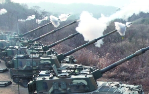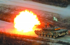 23日,韩国抱川,K-1坦克在演习中。当天韩军举行史上最大规模陆空军演。新华社发
