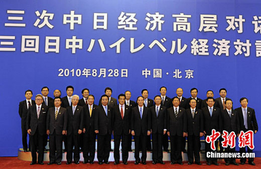 8月28日,第三次中日经济高层对话在北京人民大会堂举行。中国国务院副总理王岐山、日本外相冈田克也等出席。中新社记者 刘震 摄