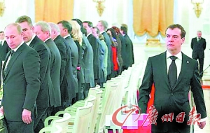 据美国媒体12月27日报道,在27日召开的俄罗斯联邦国务会议上,俄总统梅德韦杰夫跟俄总理普京因民族矛盾问题发生争执。由于此会议由俄罗斯24小时新闻电视台“vesti-24”直播,因此全国观众都能看到“梅普吵架”的情景。