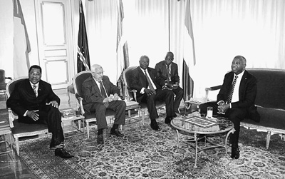 12月28日,科特迪瓦阿比让,西非国家经济共同体派出贝宁、塞拉利昂和佛得角三国总统率领的特别高级代表团会晤科特迪瓦前总统巴博。人民图片