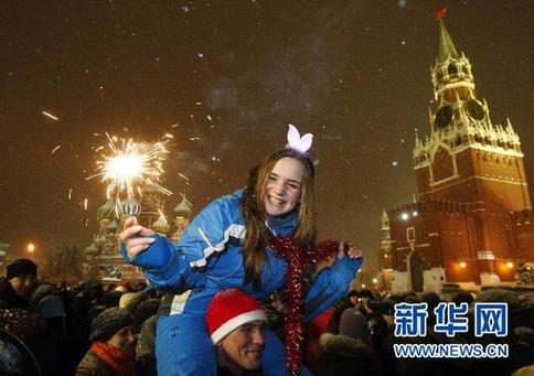 12月31日,在俄罗斯首都莫斯科,人们参加迎接新年的庆祝活动。 新华社/路透