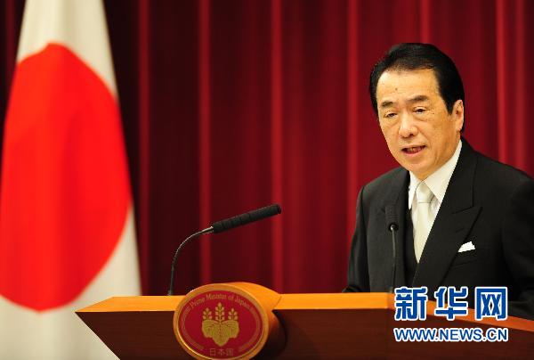 1月4日,在日本东京首相官邸,日本首相菅直人在记者会上讲话。菅直人当日召开新年后首次记者招待会。菅直人表示在任期间将不会解散众议院。 新华社记者 季春鹏 摄