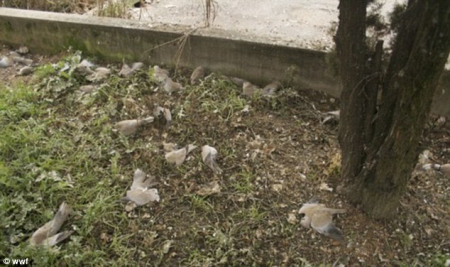 据外媒报道,意大利法恩扎市(Faenza)又有上千只斑鸠集体死亡,嘴部有蓝色斑点。据专家猜测死因是过量饮食和消化不良。