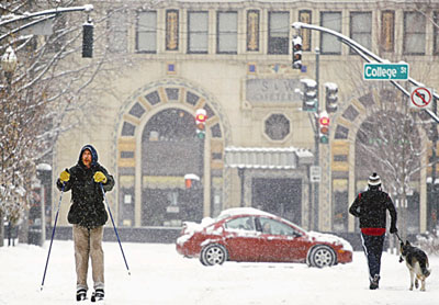 据香港《文汇报》报道,美国南部广泛地区10日罕见落大雪(见图),导致路面结冰,亚拉巴马州和路易斯安那州共有4人在车祸中丧生。路易斯安那、亚拉巴马、佐治亚及田纳西4个州宣布进入紧急状态。大雪导致电力中断,亚特兰大哈茨菲尔德-杰克逊国际机场更首次因风雪关闭,数千航班取消。该市积雪达3英寸,市长形容如此大雪在当地是十年一遇。