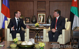 梅德韦杰夫说:“我对访问中东成果感到满意,我们与亲密的伙伴巴勒斯坦民族权力机构主席阿巴斯和约旦国王阿卜杜拉二世进行了磋商。这两个国家都是我们的在中东的合作伙伴。”
