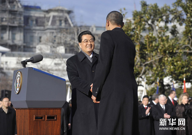 1月19日,美国总统奥巴马在华盛顿白宫举行隆重仪式,欢迎中国国家主席胡锦涛对美国进行国事访问。新华社记者张军摄