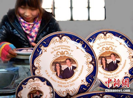 1月10日,曾为瑞典王储维多利亚公主制作大婚“国礼”系列瓷的河北唐山商务部门透露,经英皇室指定,由唐山瓷企生产的7万余件婚礼礼品瓷将作为威廉王子婚礼的“国礼。图为贴花女工正将花纸贴在骨质瓷盘上。中新社记者 白云水 摄