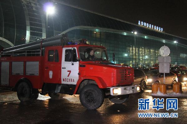 1月24日,救援车辆在俄罗斯莫斯科多莫杰多沃机场外驶过。当日,莫斯科多莫杰多沃机场发生爆炸事件,目前死亡人数已上升到35人。新华社记者魏大方摄