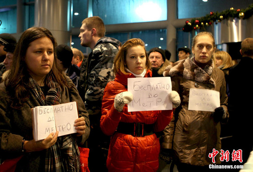 当地时间1月24日16时32分,俄罗斯首都莫斯科多莫杰多沃机场发生自杀式恐怖爆炸事件,导致35人死亡,180人受伤。俄出动强力部门全力侦破爆炸事件。图为事件发生后,多名在机场迎接亲人的当地青年自发组织起来,免费为乘客提供车辆服务。中新社记者 田冰 摄