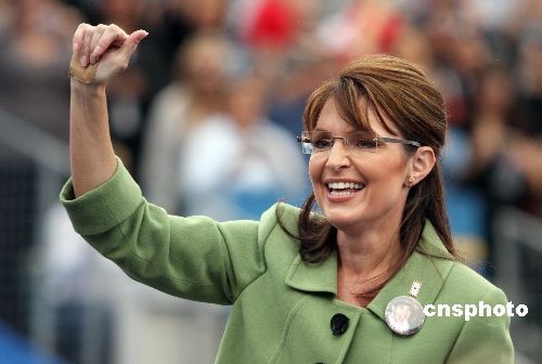 美国共和党副总统候选人莎拉·佩林10月4日来到加州卡森市出席造势大会,近两万名共和党支持者到场为佩林助威。 中新社发 杨正 摄
