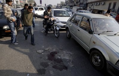 其中一名巴基斯坦死者的遗体送往停尸间时,亲人在一旁痛哭。