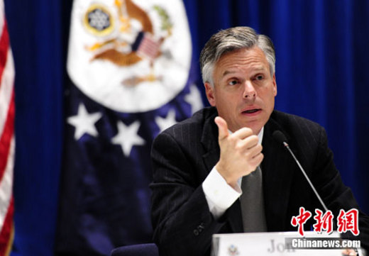 1月12日下午,在中国国家主席胡锦涛即将访问美国之前,美国驻华大使洪博培在大使馆举办一场媒体见面会。洪博培表示,美中两国目前关系良好。中新社记者 侯宇 摄