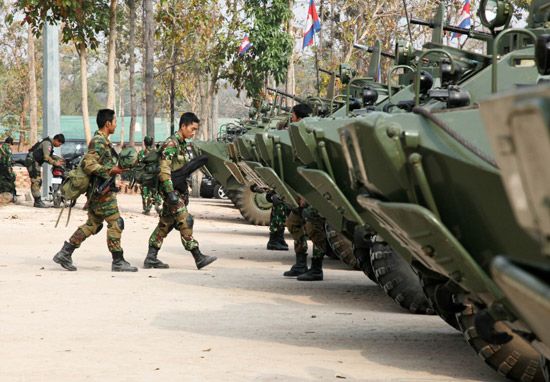2月9日,大批柬埔寨士兵驻扎在柬泰边境柏威夏寺附近地区,为可能再次爆发的柬泰武装冲突做准备。