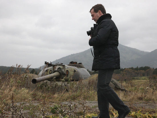 2010年11月1日,俄罗斯总统梅德韦杰夫登上南千岛群岛(日本称北方四岛)。