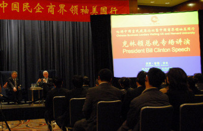 由“华佗论箭”、“郑和舰队”共同主办的“哈佛中国富民感恩论坛暨中国商界领袖美国行”,7日至13日在纽约、波士顿和加州等地进行。这个由170多名中国各省市民营企业家组成的庞大代表团,9日在纽约举行了首日论坛,还邀请到美国前总统克林顿参加。
