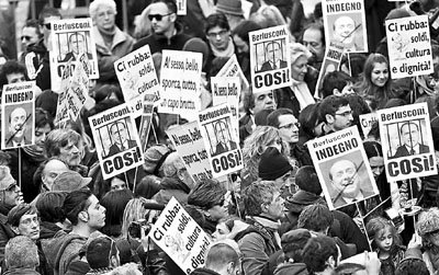 据香港《文汇报》报道,意大利总理贝卢斯科尼召雏妓案愈闹愈大,13日,数千名女性在罗马、米兰等200个城市游行,发动全国示威,抗议贝卢斯科尼“诋毁”传媒对他的性丑闻报道,以及他对女性的轻蔑态度。