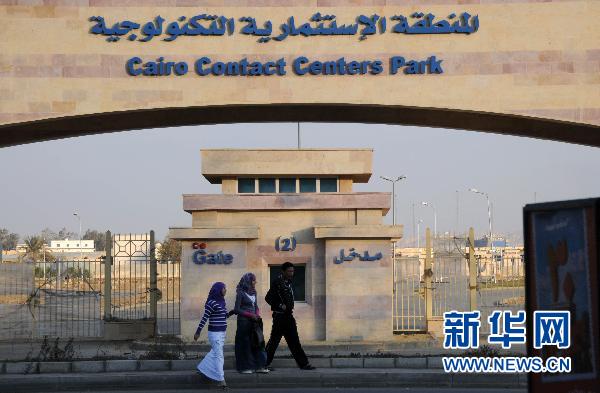 2月13日,几位市民从埃及首都开罗一处公园门口走过。新华社记者金良快摄