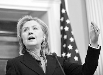 在美国首都华盛顿,美国国务卿希拉里·克林顿就维基揭秘事件举行记者会。