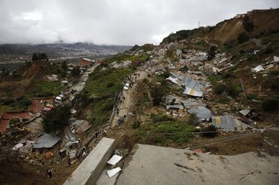 据外电报道,玻利维亚行政首都拉巴斯市27日遭遇强降雨袭击,一个贫民社区发生山体滑坡事件,造成公路被阻断,至少400栋房屋与民众的大量财产被污泥与瓦砾掩埋。