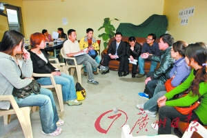 2月28日,部分家属与使馆工作人员在交流。本报特约记者 王世瑞 摄