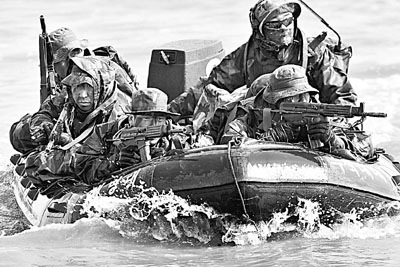 韩国海军陆战队上周五为昨日与美联合军演进行演习。