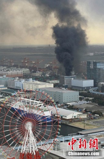 日本近海3月11日发生了强烈地震,首都东京震感强烈。日本气象厅随即发布了海啸警报,称地震将引发约6米高海啸。图为东京市内一建筑物发生火灾。