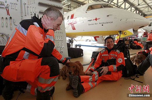 北京时间3月11日13点46分,日本本州岛附近海域发生里氏8.9级地震,震中位于宫城县以东太平洋海域,震源深度10公里,东京有强烈震感。图为瑞士国际救援队即将启程前往日本地震灾区救援。