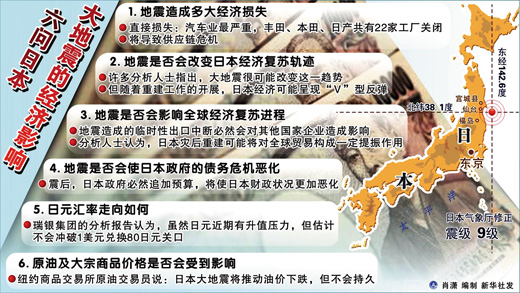 日本东北部海域11日发生里氏9级地震,并引发大规模海啸,东北部工业区遭受重创。日本大地震会影响全球经济复苏吗?哪些国际产业链条会受到波及?对中国经济又会产生哪些影响?商务部部长陈德铭日前在两会间隙接受记者采访时表示,日本对中国一直是巨大的贸易顺差,日本地震对中国经济短期可能有些影响,但只是暂时的。