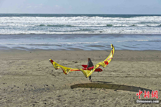 当地时间3月11日下午,美国旧金山日落区太平洋岸边,一位勇敢的冲浪者带着他的风帆步向海浪。当天上午8时,日本强震引发的海啸抵达旧金山海岸,未造成灾难性损害,居民生活如常。中新社发 陈钢 摄