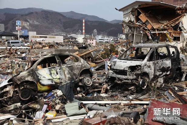 3月14日拍摄的照片显示,震后的日本东北岩手县大船渡市。当日,来自中国的救援队伍抵达大船渡市展开救援工作。新华社记者张金加摄
