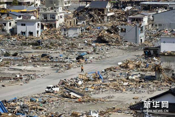 3月14日拍摄的照片显示,震后的日本东北岩手县大船渡市。当日,来自中国的救援队伍抵达大船渡市展开救援工作。新华社记者吕小炜摄