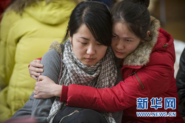 3月14日,在日本岩手县大船渡市,两名中国籍在日研修生在避难所内相拥。当地时间14日下午,新华社记者走访了日本地震重灾区之一的岩手县大船渡市,并在市内一处避难所确认了28名中国籍公民的安全。据了解,这28名在日中国研修生平时居住在临近海岸的宿舍。地震发生后,大船渡市海岸附近地区遭受巨大海啸的袭击。他们听到海啸预警后,在日方相关人员的引导下成功撤离,之后一直在市内避难所生活。目前身体状况良好。新华社记者吕小炜摄