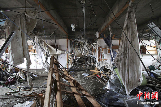 3月15日,日本9.0级大地震和海啸发生后。日本宫城县医院病患被医护人员救出,但是医院还是受到了相当大的破坏。