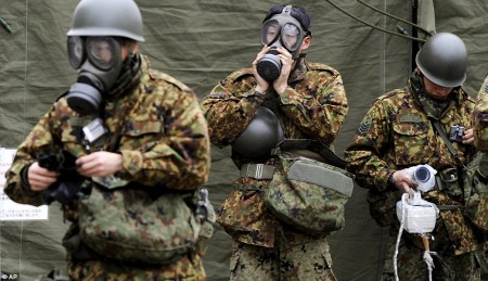 士兵全副武装清除日本核电站泄漏出的辐射物质