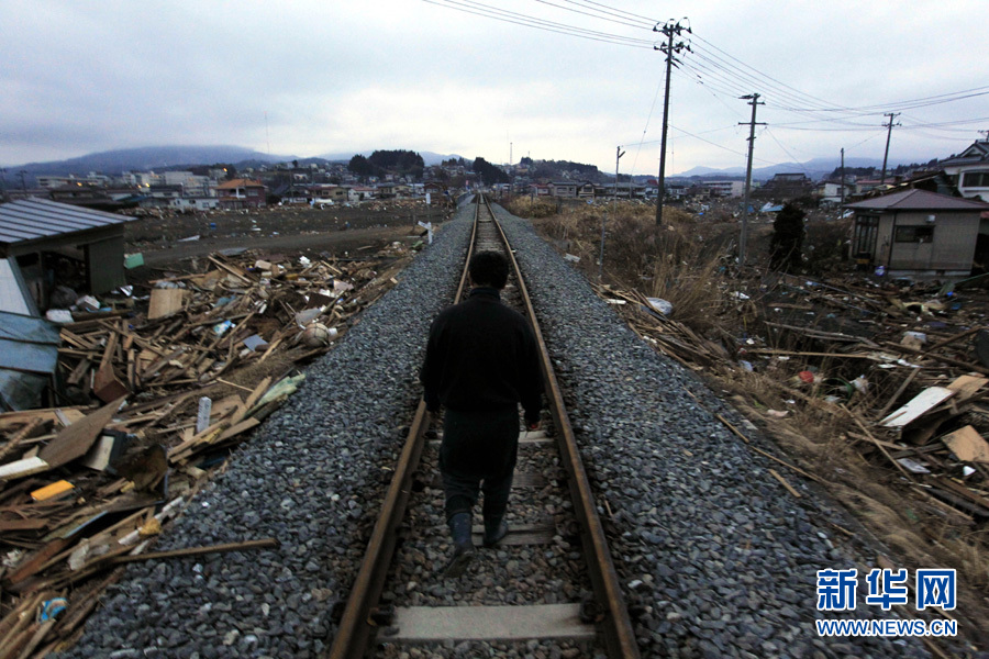 3月21日,在日本东北部重灾区宫城县气仙沼市,现年58岁的当地居民雨宫满行走在回家的路上。当日,日本大地震进入震后第11天。据日本警察厅统计,截止到下午3时,在此次日本大地震中死亡、失踪的人数达到21911人,确认死亡8649人。新华社记者任正来摄