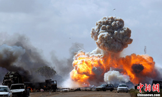 3月20日,班加西附近,忠于卡扎菲的武装力量装备遭遇联军袭击。