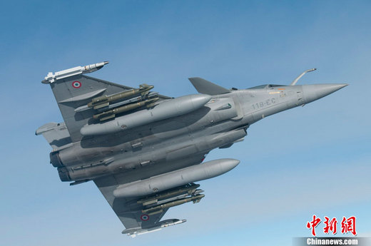 当地时间3月19日,一架法国阵风战机攻击利比亚期间接近一架空中加油机进行加油作业。