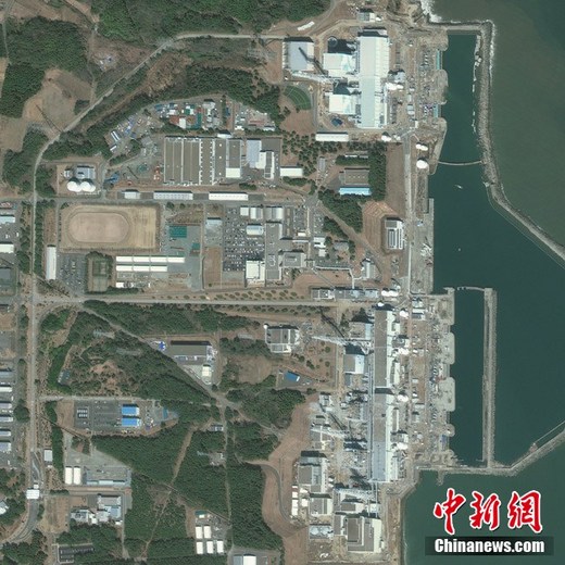 3月18日(当地时间上午10时03分)拍摄的卫星照片显示的是日本福岛第一核电站。